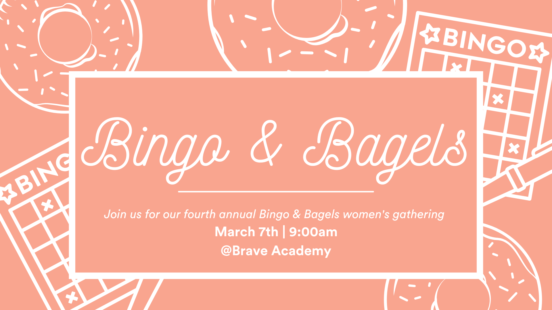 Join us for our fourth annual Brave Women’s Bingo & Bagels gathering. Ladies, this is one of the funnest events our Brave Women's ministry hosts every year, and we cannot wait to do it again. This event gets better and better every year and we can’t wait to do it again with you! This is a perfect event to bring a friend.