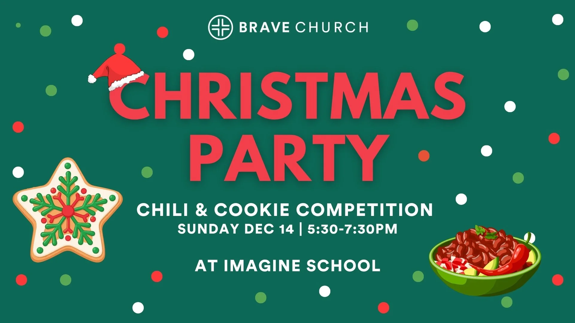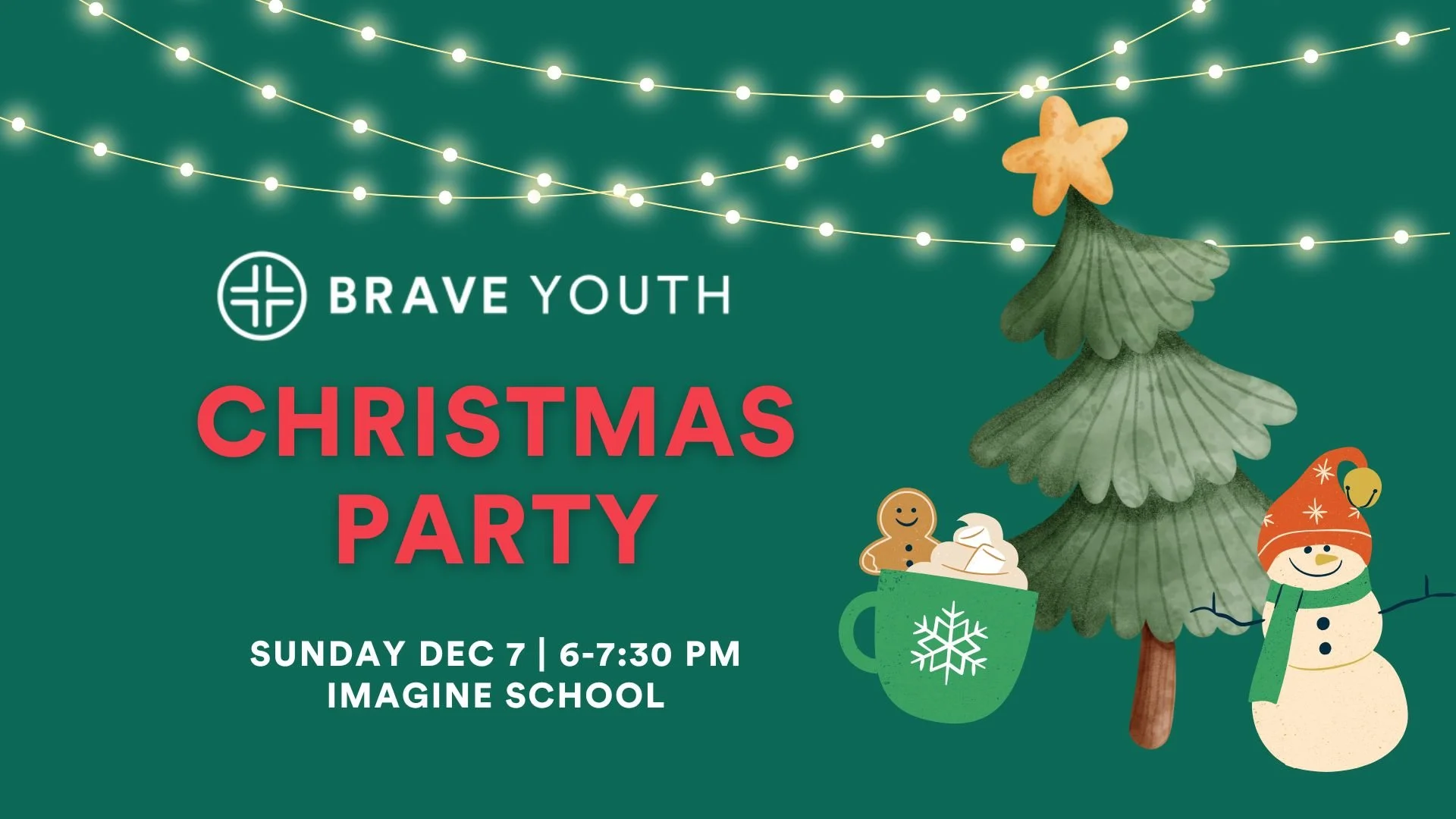 If you’re in 6th–12th grade, come join us for our Brave Youth Christmas Party at Imagine! It’s going to be a night full of Christmas cheer, games, friends, and fun. Bring someone with you and don’t miss it!